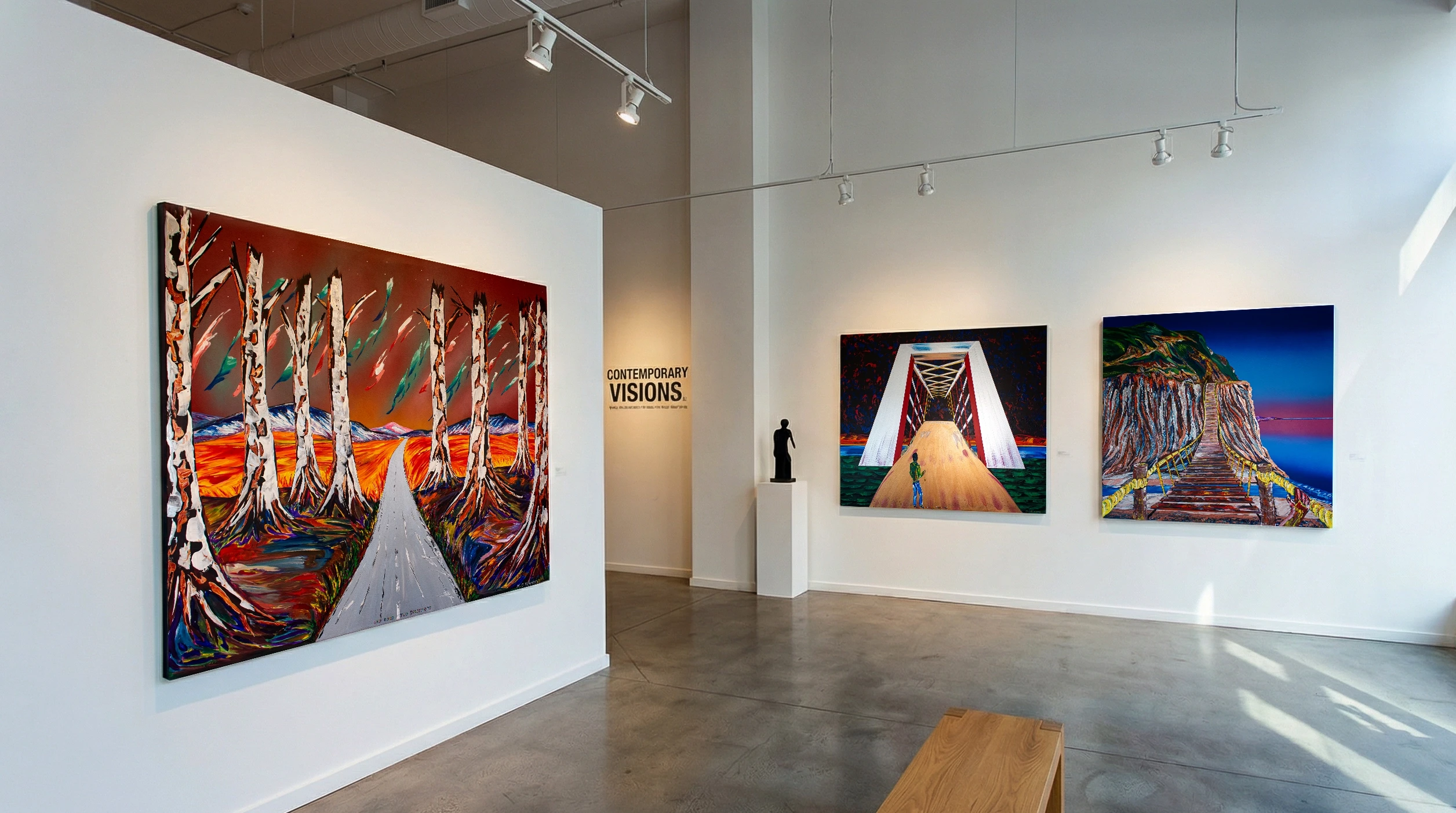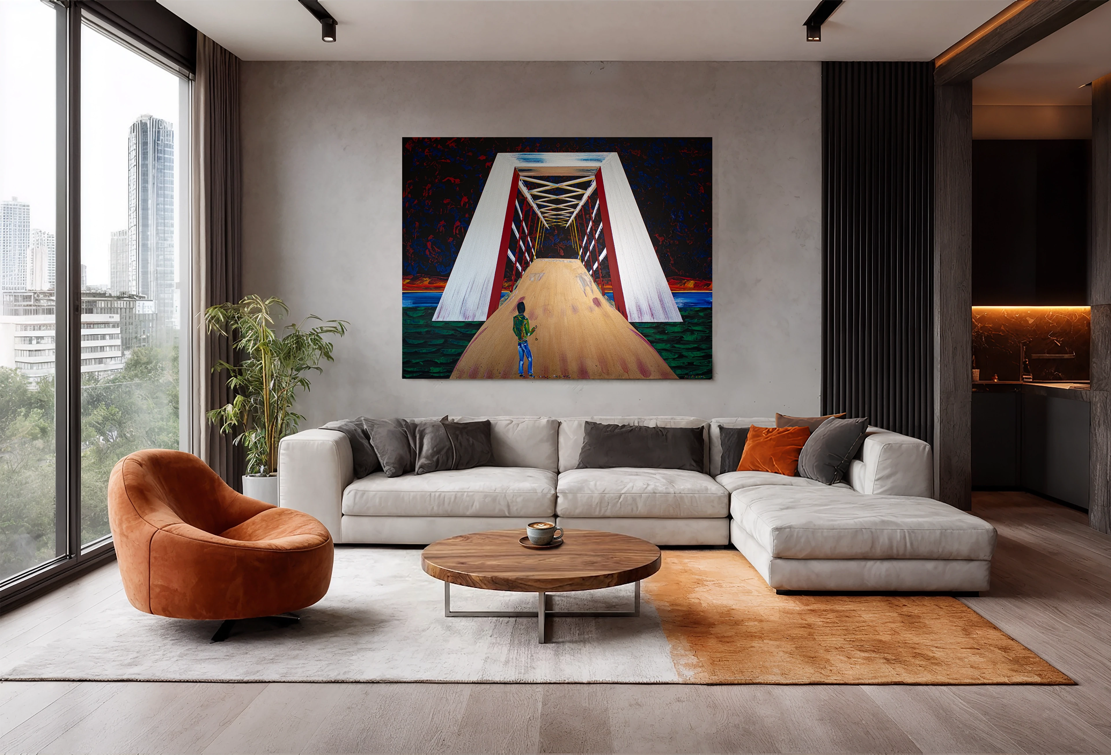 Dreamscapes of transition and the architecture of the subconscious. Inspired by recurring dreams of bridges, this series explores the physical and emotional act of crossing from one state to another. Through vibrant color and dramatic perspective, these pathways invite the viewer to navigate the high-elevation spans and cosmic roads that bridge the gap between our fears and our destinations. A journey into the unknown.